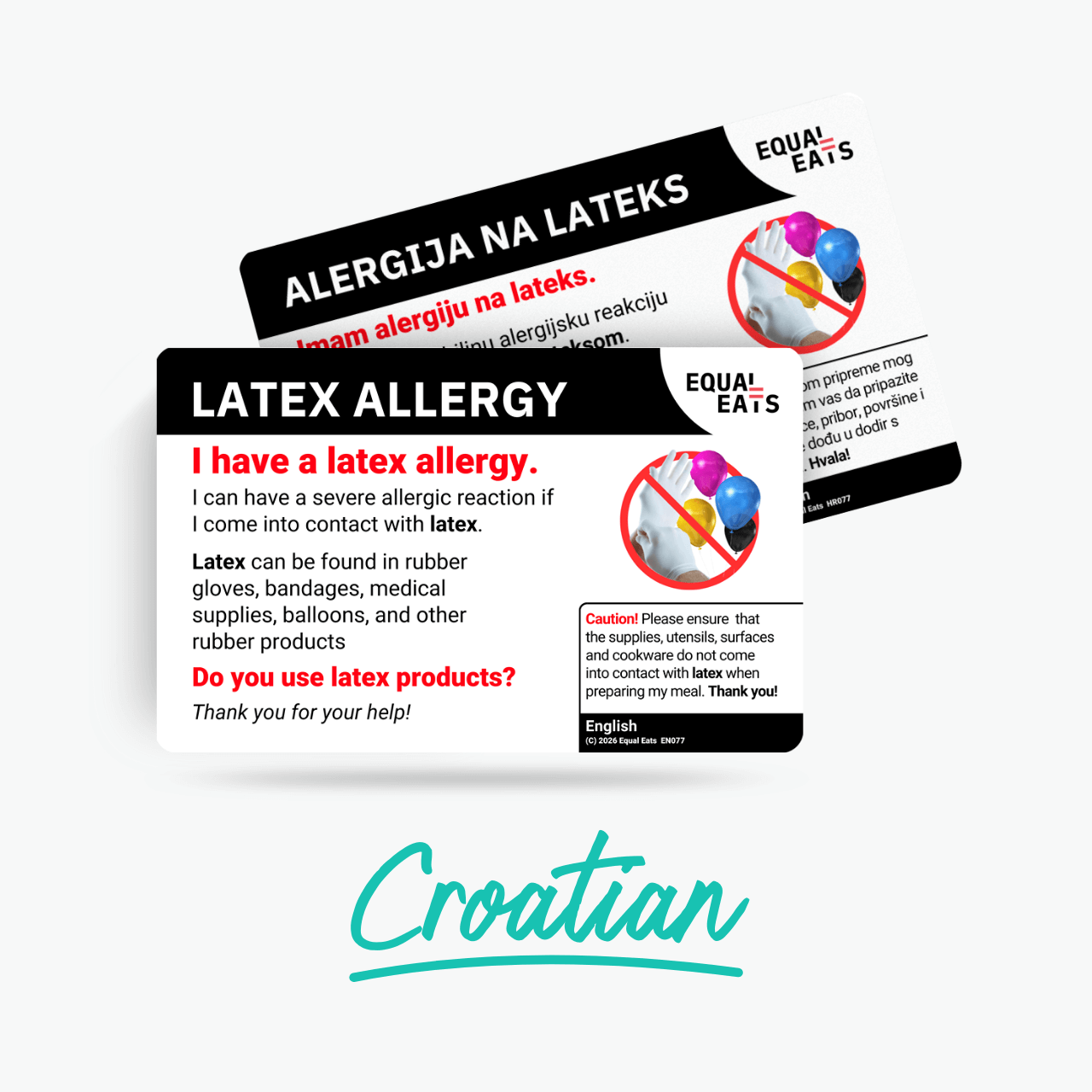 A latex allergy card in Croatian helps bridge the communication gap, ensuring your latex allergy is noted, remembered, and understood.