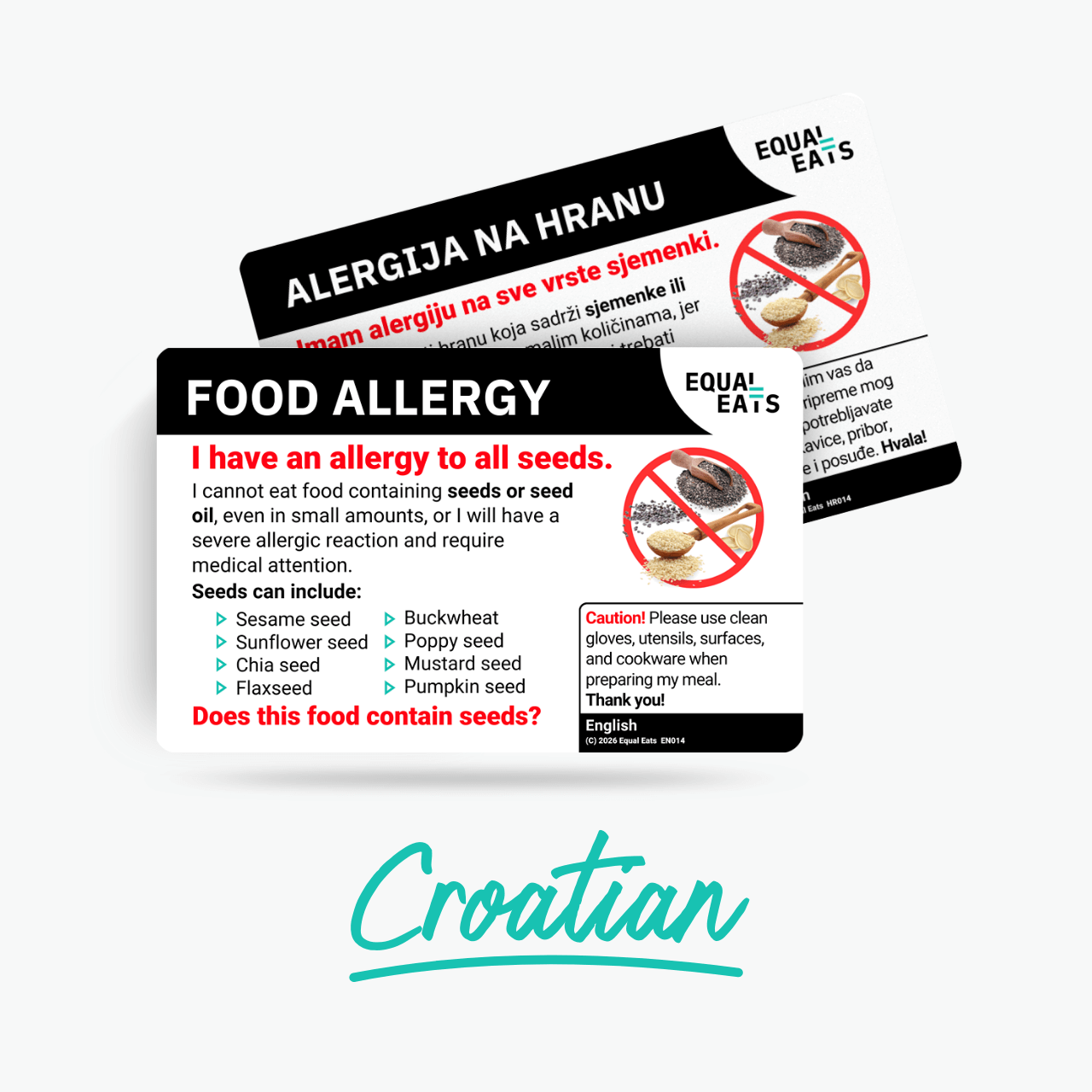 A seed allergy card in Croatian helps bridge the communication gap, ensuring your request is noted, remembered, and understood.