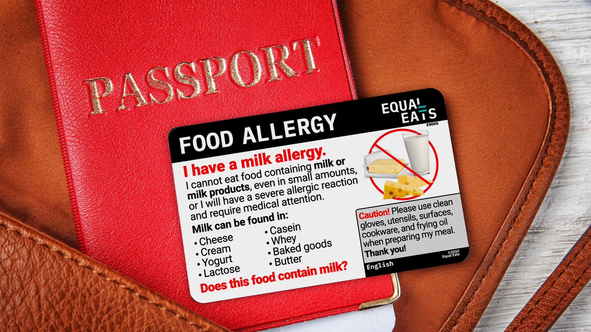 An Equal Eats plastic card is the side of a credit-card, double-sided and made of durable plastic. It will last for years in your wallet or passport case.