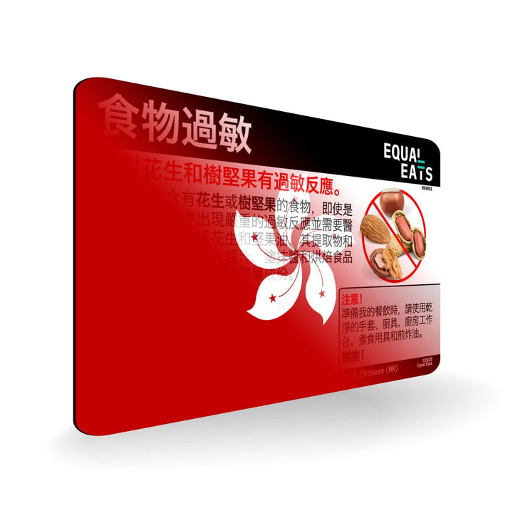 Traditional Chinese (Hong Kong) Peanut and Tree Nut Allergy Card