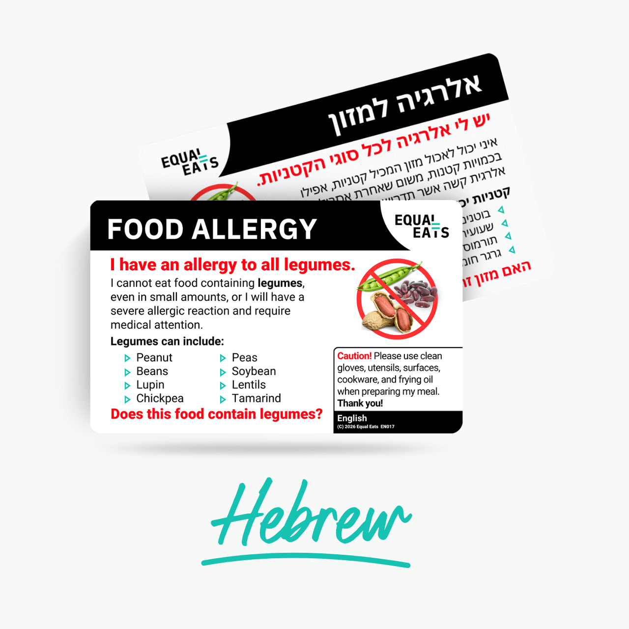 A legume allergy card in Hebrew helps bridge the communication gap, ensuring your request is noted, remembered, and understood.