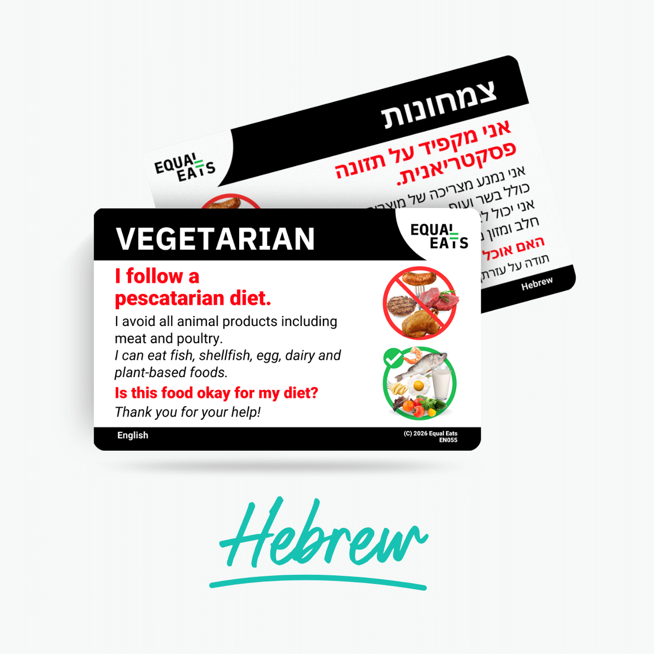 A pescatarian card in Hebrew helps bridge the communication gap, ensuring your request is noted, remembered, and understood.