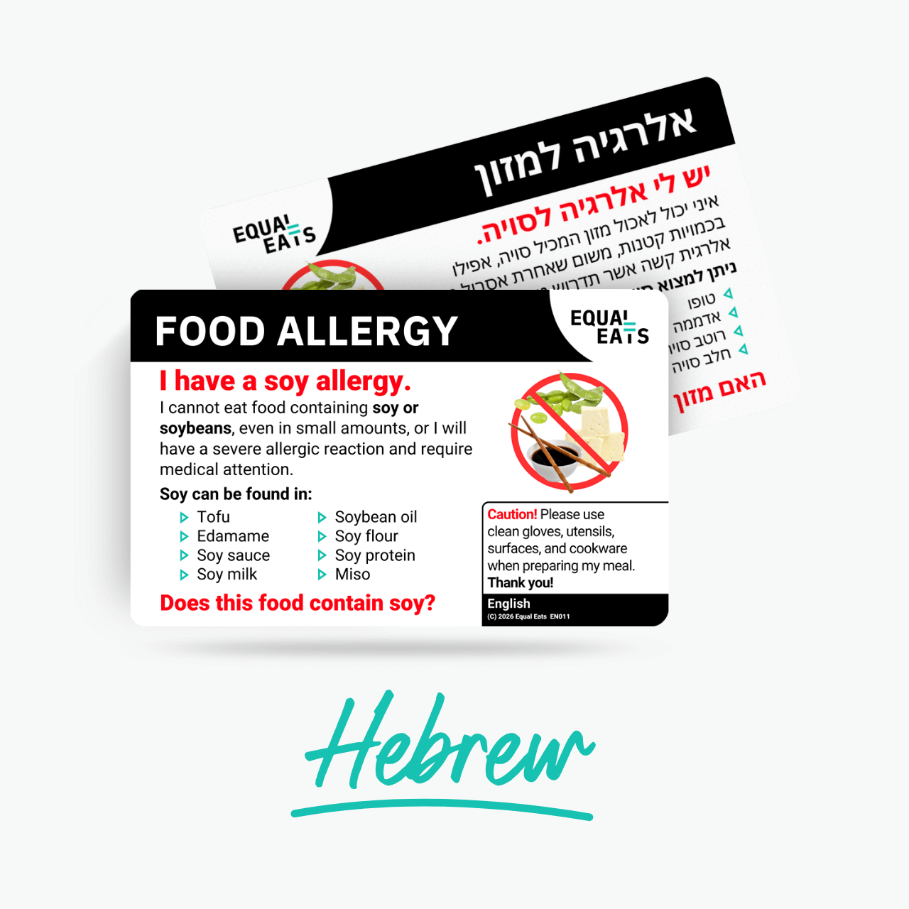 A soy allergy card in Hebrew helps bridge the communication gap, ensuring your request is noted, remembered, and understood.