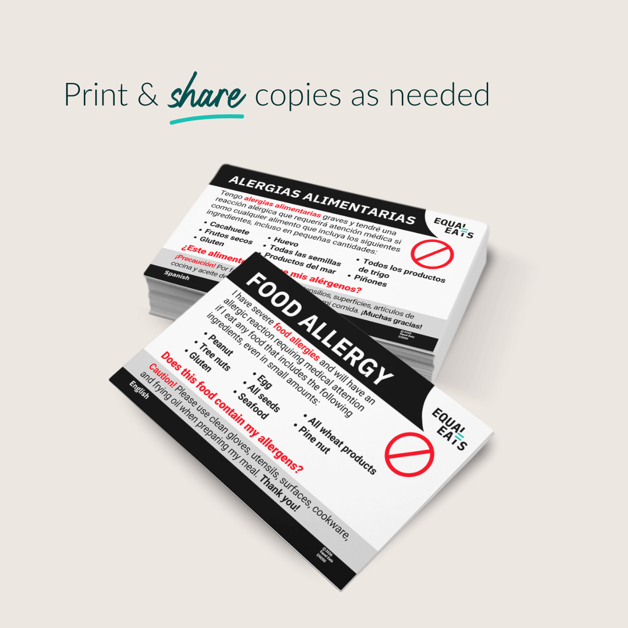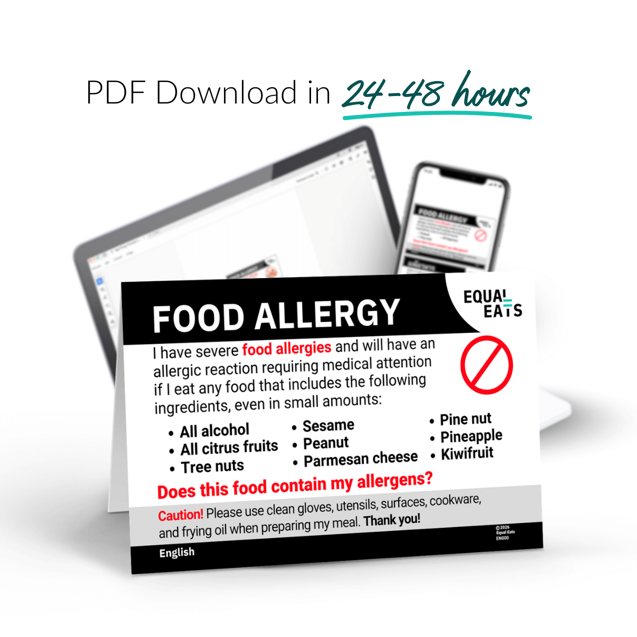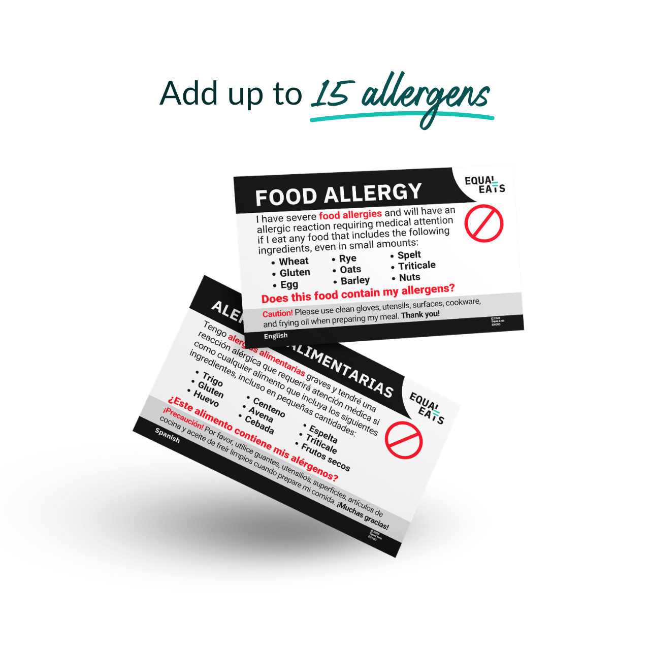 Note: We create cards with the exact allergens and order selected. If you choose "tree nuts", we will list "tree nuts". If you would like specific nuts listed, you must select each one individually.