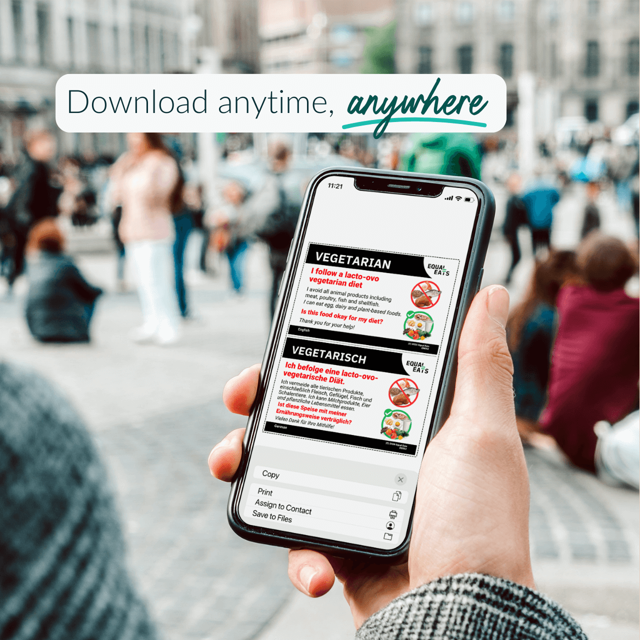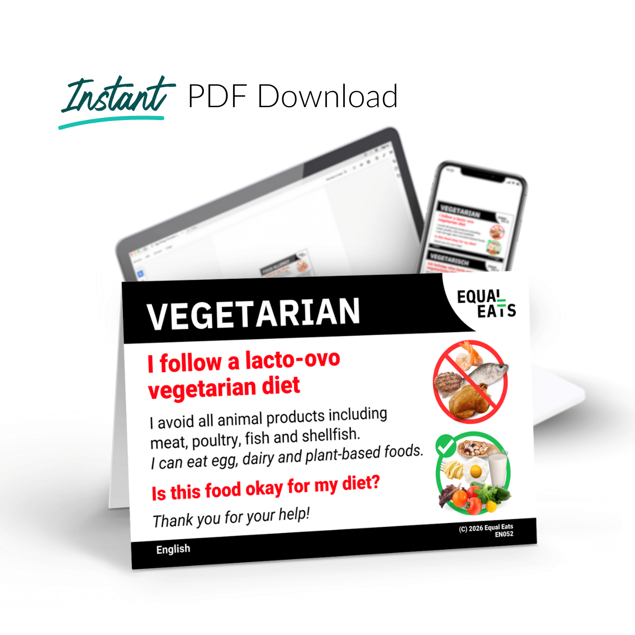 Stick to your vegetarian diet plan while travelling with an Equal Eats Lacto Ovo Translation Card.