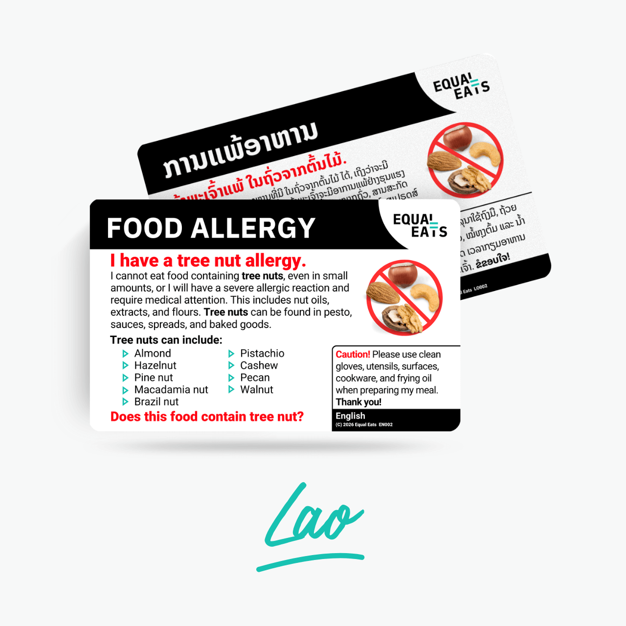 Get an accurate English to Lao translation of your nut allergies with an Equal Eats card.