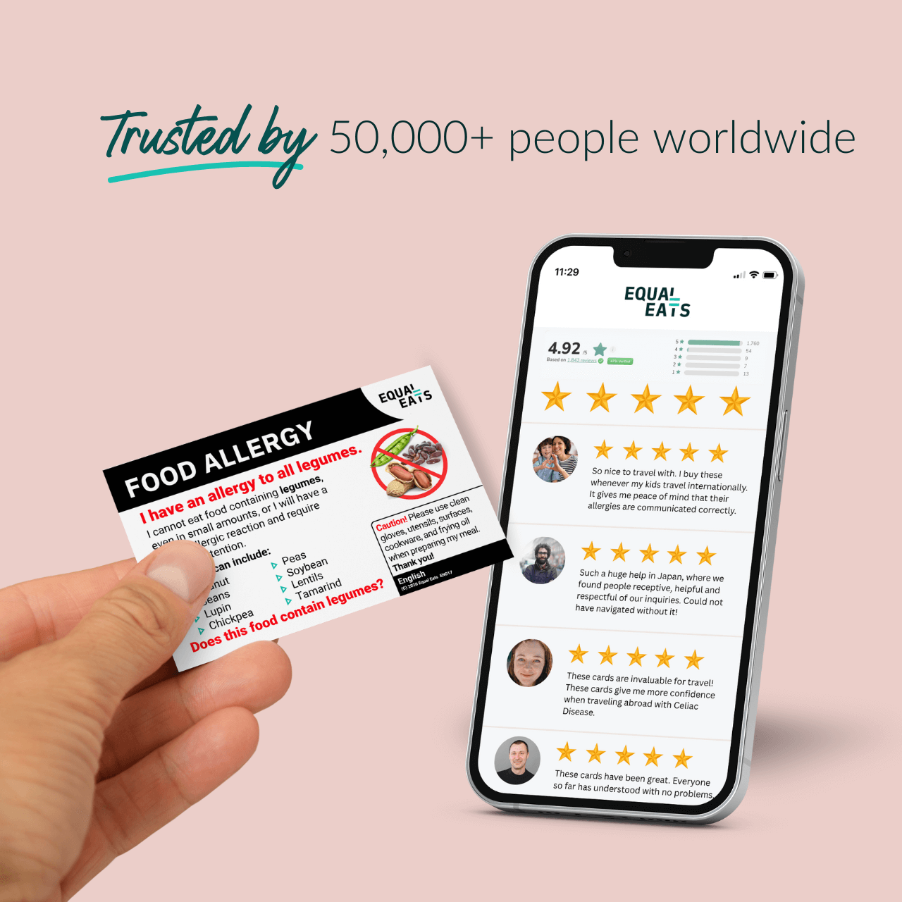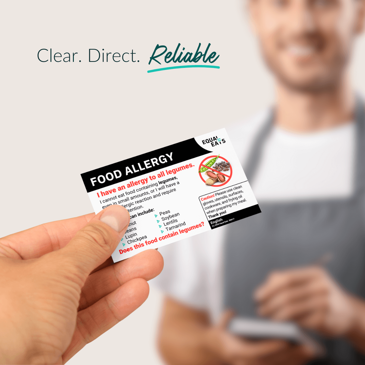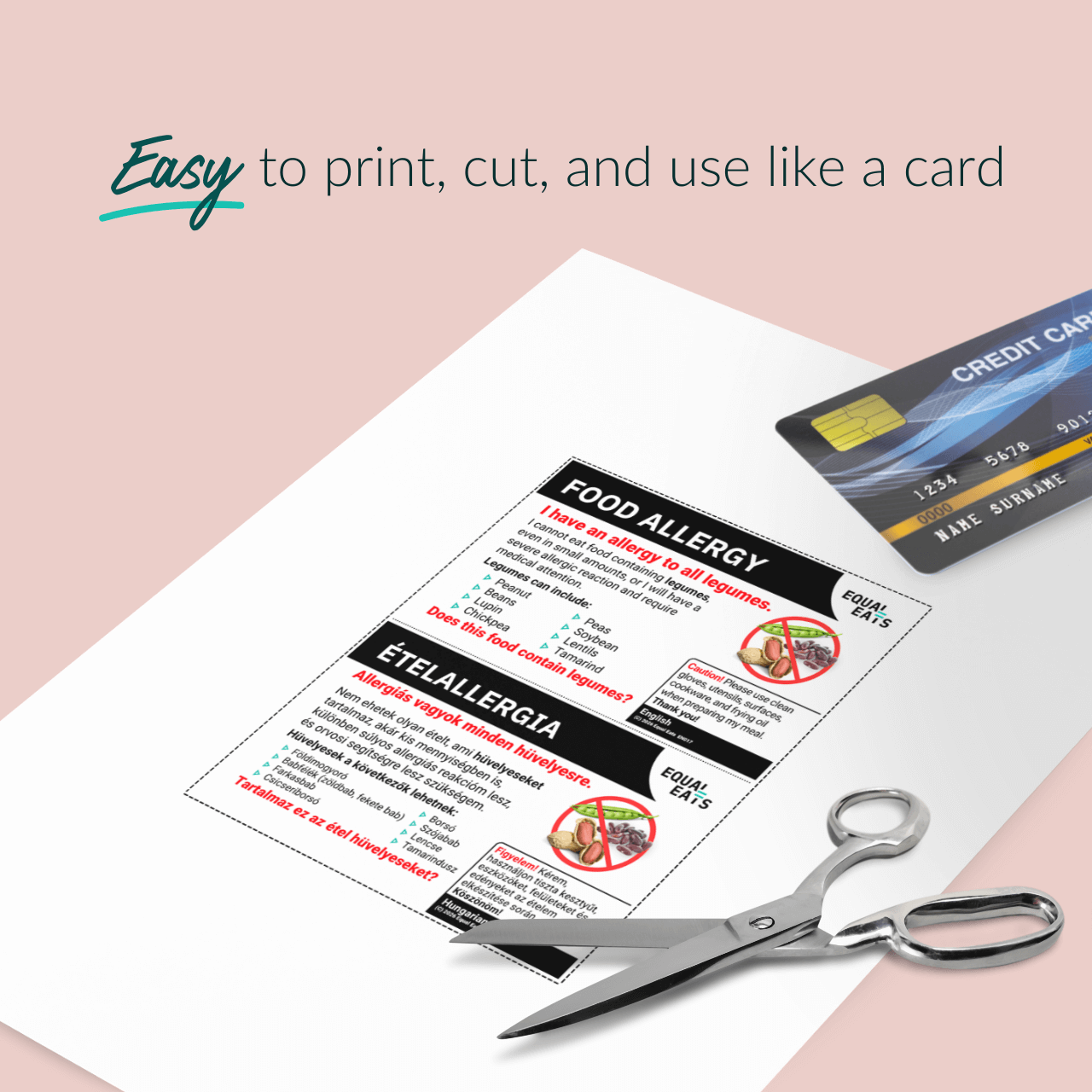 Get an instant download translation card for your legume allergy and eat with less stress! A digital legume allergy card can help others understand your allergy to peas, beans and more at restaurants.