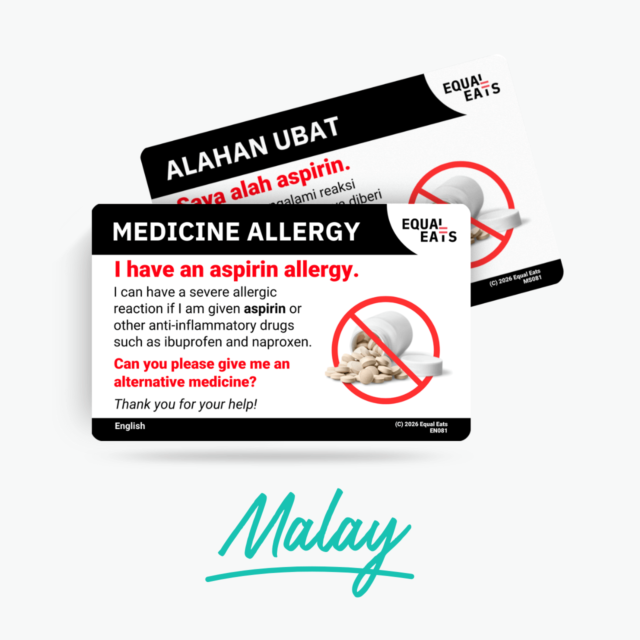 An aspirin allergy card in Malay helps bridge the communication gap with healthcare workers, ensuring your medical condition is noted, remembered, and understood.