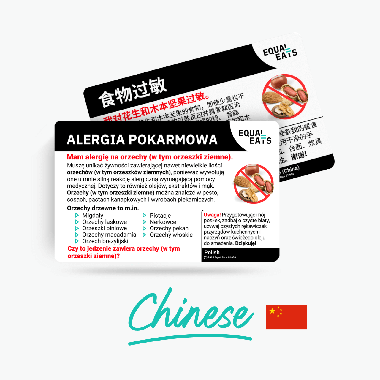A peanut and tree nut allergy card in Simplified Chinese helps bridge the communication gap, ensuring your request is noted, remembered, and understood.