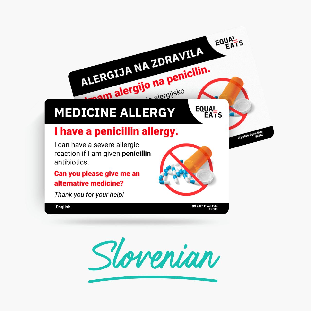 A penicillin allergy card in Slovenian helps bridge the communication gap with healthcare workers, ensuring your medical condition is noted, remembered, and understood.