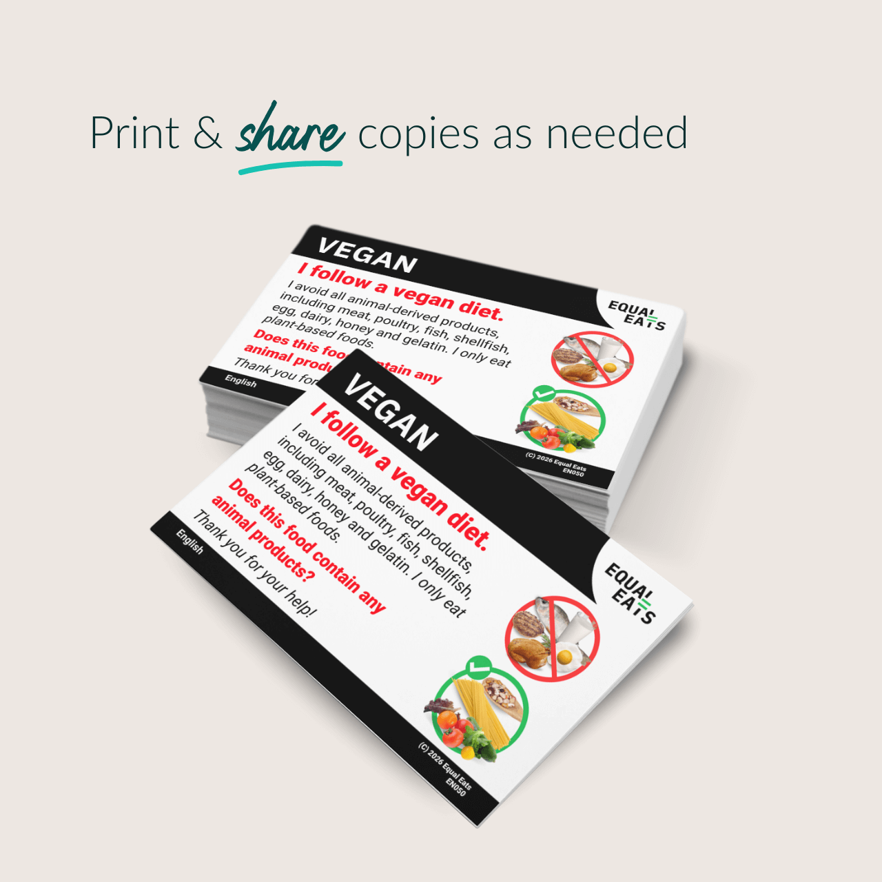 Stick to your vegan diet plan while travelling with an Equal Eats vegan translation card.