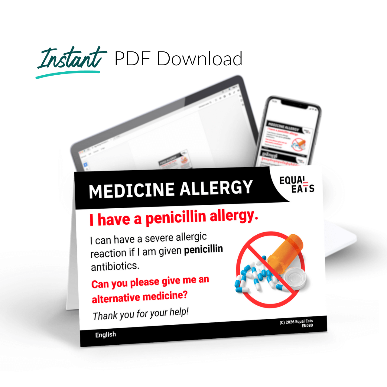 Penicillin allergy is crucial to communicate to medical staff. Make sure you are prepared for medical emergencies overseas with a penicillin allergy translation card that can ensure you allergy is understood. An Equal Eats digital penicillin allergy card can be saved on your phone, or printed as paper copies.