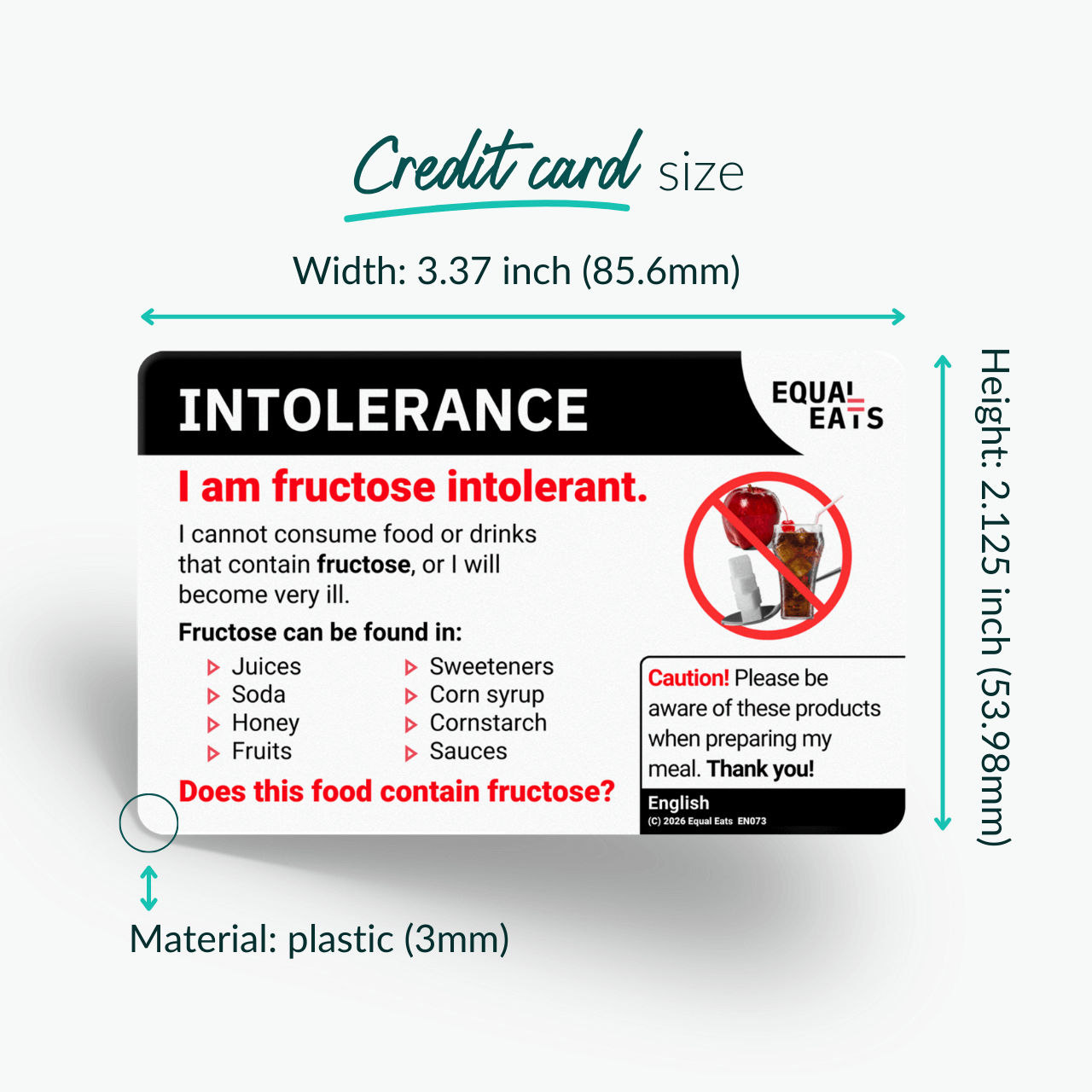 An Equal Eats plastic card is the size of a credit-card, double-sided and made of durable plastic. It will last for years in your wallet or passport case.