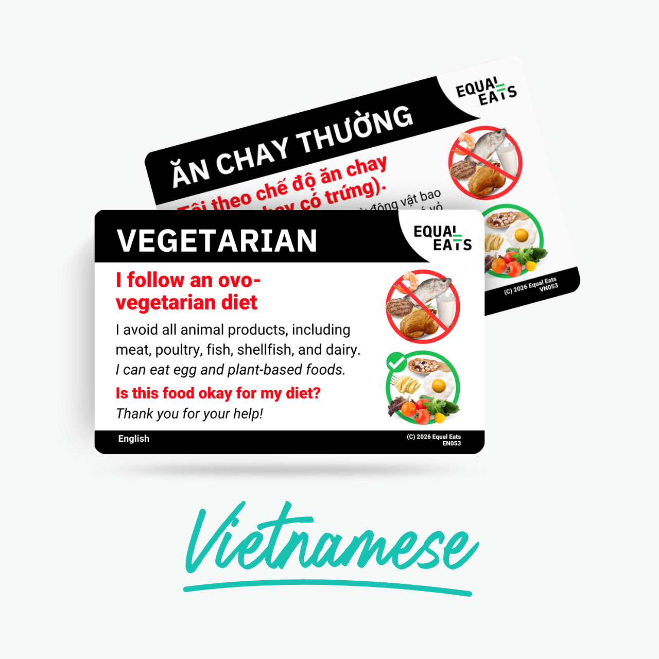An ovo vegetarian card in Vietnamese helps bridge the communication gap, ensuring your request is noted, remembered, and understood.
