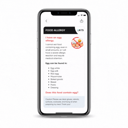 Our digital customized food allergy translation cards help bridge communication gaps, ensuring your dietary request is understood, noted and remembered.