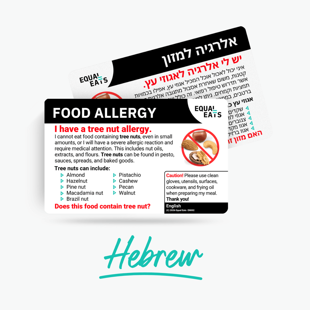 Hebrew Printable Allergy Card for Tree Nut Allergies